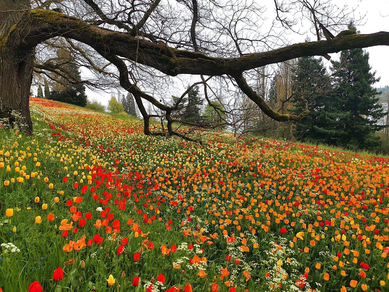 Auch wenn die sogenannten „Champion Trees“ der Baumsammlung (außergewöhnliche Exemplare aus aller Welt, die durch ihre Größe, ihr Alter oder ihren Wuchs herausragten) sehr beeindruckten, die meisten Foto-Clicks gab es für die unglaubliche Menge und Farbenpracht der Tulpen, Narzissen und anderen Frühblühern.