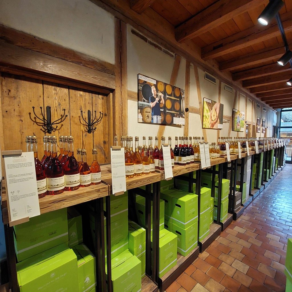 Alkoholfrei genauso begeisternd und spannend wie Sekt, Champagner oder Wein? Gegenfrage: wer kommt heute ohne alkoholfreie Alternative aus? Bei unserem Ausflug nach Schlat konnten wir uns sehr wohl davon überzeugen, dass das heutzutage funktioniert. Starten durften wir mit zwei von unseren insgesamt sieben Getränkeproben im Hof der Manufaktur.