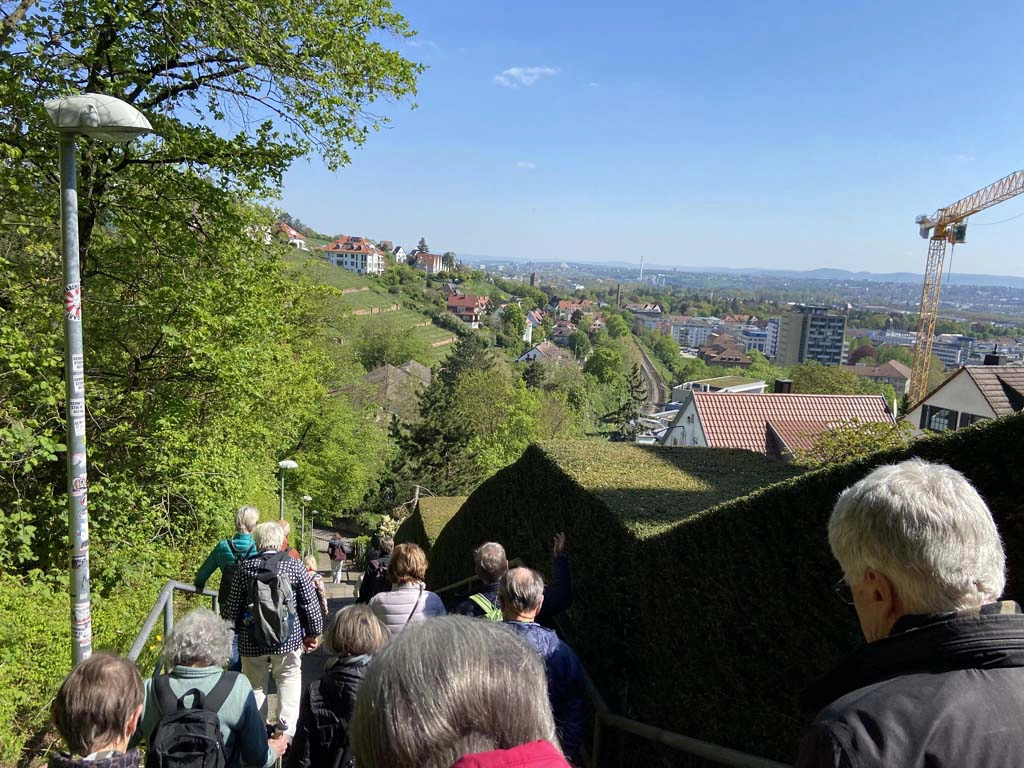 Diese abwechslungsreiche Stäffeles Tour Nord startet am Hauptbahnhof. Über einem kurzen Anstieg erreichen wir zunächst den China Garten mit einem tollen Ausblick über den Stuttgarter Talkessel hinweg. Weiter geht es durch ländlich anmutende Stadtteile, bergauf und bergab. Die nächste Etappe führt zur architektonisch berühmten Weissenhofsiedlung. Nach einem Rundgang durch die unter Denkmalschutz gestellte Siedlung endet unsere gemeinsame Stäffeles Tour am Killesberg.