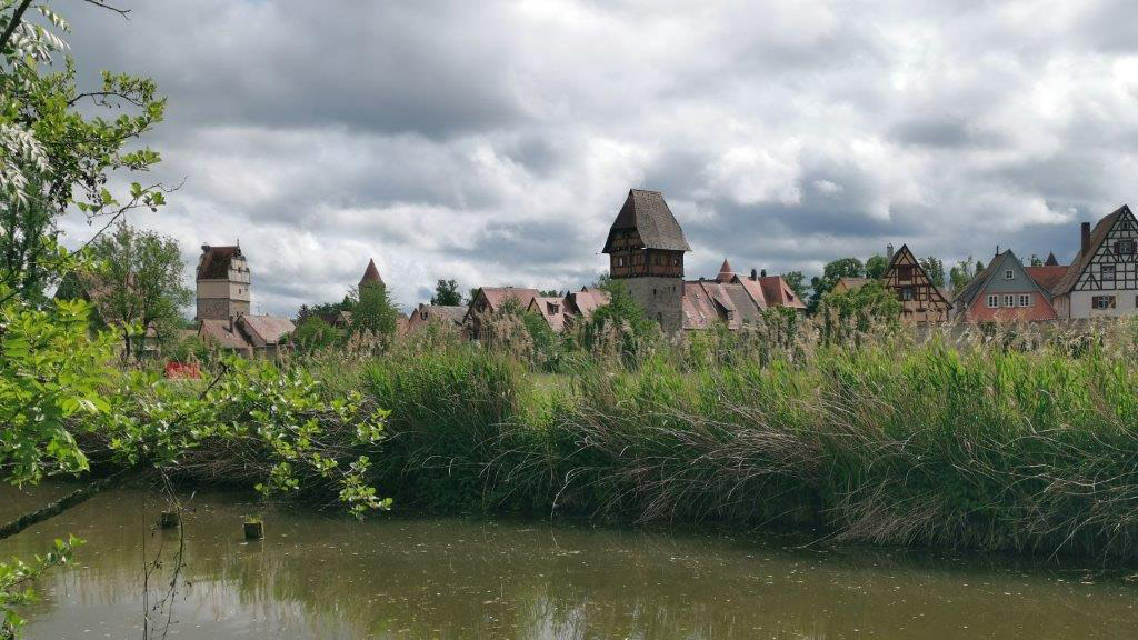 Dinkelsbühl verdankt Ihren besonderen Reiz vor allem der Tatsache, dass die Stadt nie zerstört wurde und so ihre mittelalterliche Gebäudesubstanz samt Stadtmauer mit Wehrtürmen erhalten blieb und heute von einer Gemeindeverwaltung durch strikte Auflagen für Farbgebung der Gebäude, dezente Außenwerbung etc. geschützt werden.