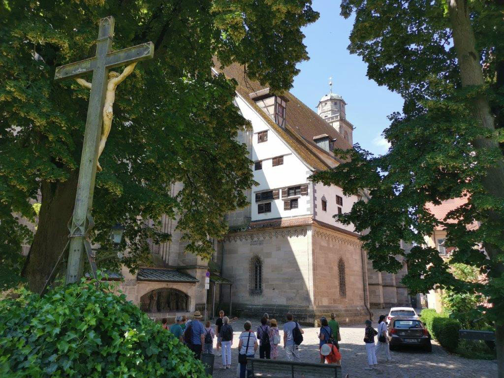 Wolkenverhangener Himmel und Nieselwetter begleiteten unsere Fahrt ins mittelalterliche Dinkelsbühl – laut Fokus, der schönsten Altstadt Deutschlands. Die gute Stimmung der Teilnehmenden und ihre Vorfreude auf den Ausflug konnte das Wetter nicht trüben.